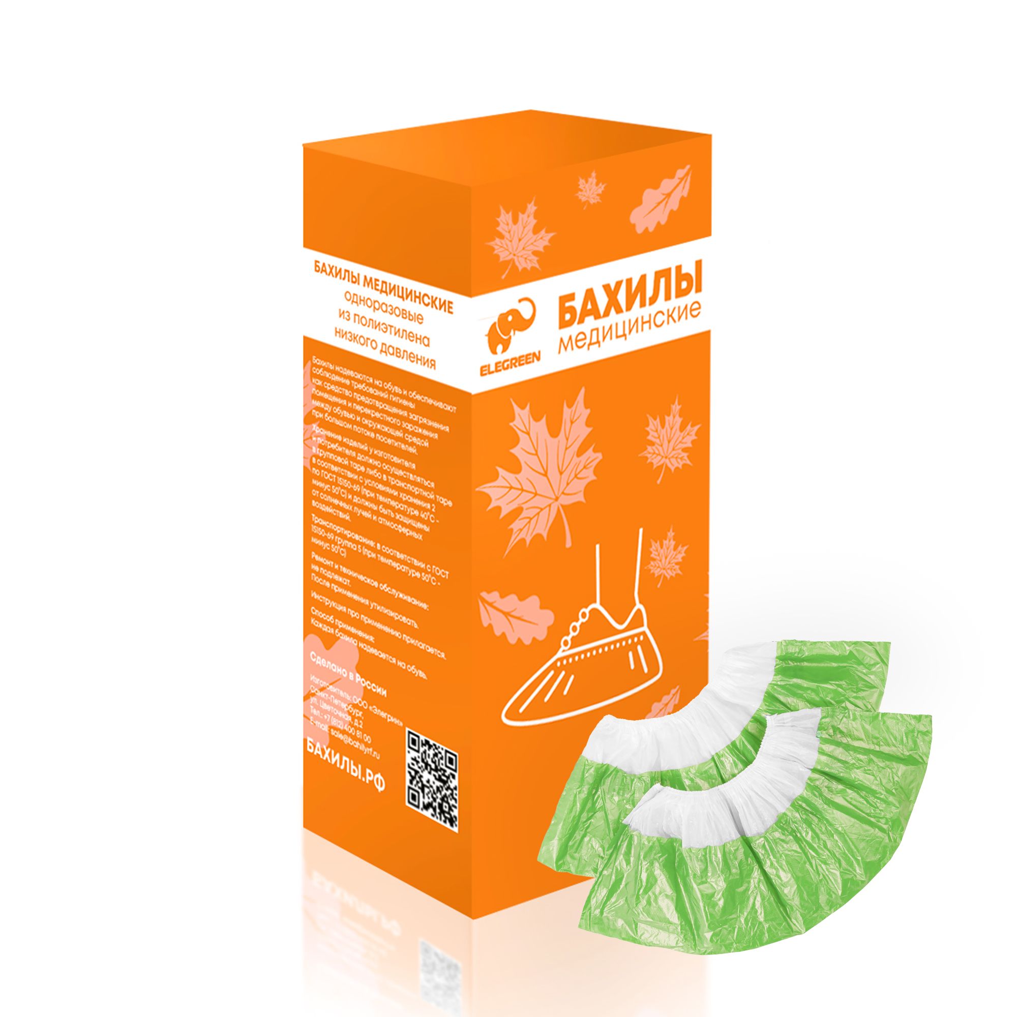 Бахилы Elegreen Экстра с двойной подошвой бело-зеленые в евроблоке